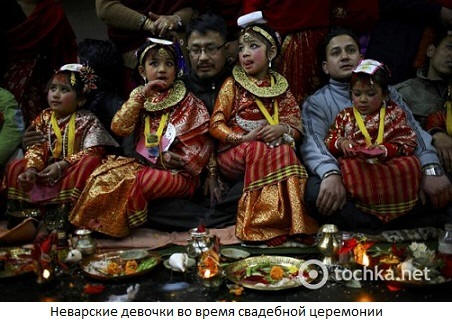В Непале проживает народ неварцы. Из соседней Индии они переняли обряд сати, когда вдова входит на погребальный костер своего мужа. Однако на самом деле сцен самосожжения неварской вдовы вы не увидите. В 5-10-летнем возрасте каждая девочка выходит замуж за дерево бел, считающееся одним из воплощений бессмертного бога Вишну. В качестве жениха на церемонии присутствует плод с дерева.