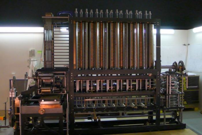 В начале XIX века британский изобретатель Чарльз Бэббидж собирался создать первую вычислительную аналитическую машину. Предполагалось, что работать она будет на перфокартах и сможет выполнять математические вычисления и хранить полученные результаты. После всех расчётов, оказалась, что такая машина будет размером с локомотив. В итоге от проекта отказались из-за нехватки денег и технологий.