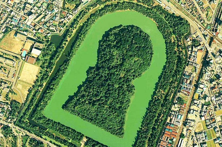 Японские острова усеяны сотнями древних курганов, самые крупные из которых имеют типичную форму замочной скважины и называются Кофун. Построенные между третьим и седьмым веками нашей эры, самые внушительные из них приписываются полулегендарным первым императорам, а меньшие, вероятно, принадлежат придворным чиновникам и членам королевской семьи. Среди них так называемый Дайсэн-Кофун — один из крупнейших памятников, когда-либо построенных на Земле: его длина составляет 486 метров, а высота — около 36. Его традиционно приписывают императору Нинтоку, шестнадцатому императору Японии.