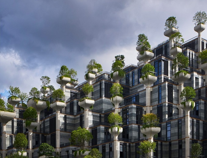 В Шанхае запустилась первая часть комплекса "1000 деревьев", который был вдохновлен одним из 7 чудес света — Висячими садами Семирамиды в Вавилоне. Об этом сообщает издание Dezeen.