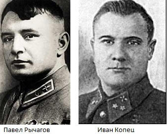 Иван Копец стал генералом-майором в 32 года, ВОВ встретил в должности командующего ВВС Западного Военного Округа. 22 июня округ потерял 738 самолетов из 1453, причем 528 сгорели еще на земле при бомбардировке аэродромов. Узнав о масштабах потерь, Иван Копец застрелился.