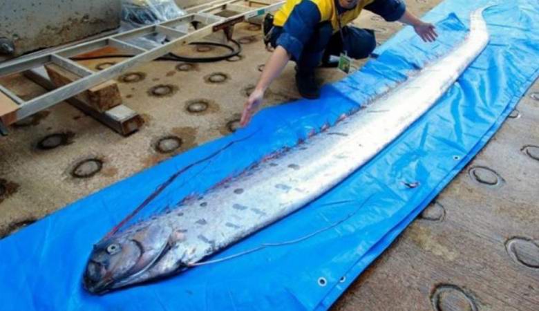 В социальных сетях Страны восходящего солнца вспыхнула тревога после того, как пару дней назад у побережья префектуры Тояма были обнаружены так называемые сельдяные короли огромных размеров. Длина наиболее крупного ремнетела превышала 4 метра.