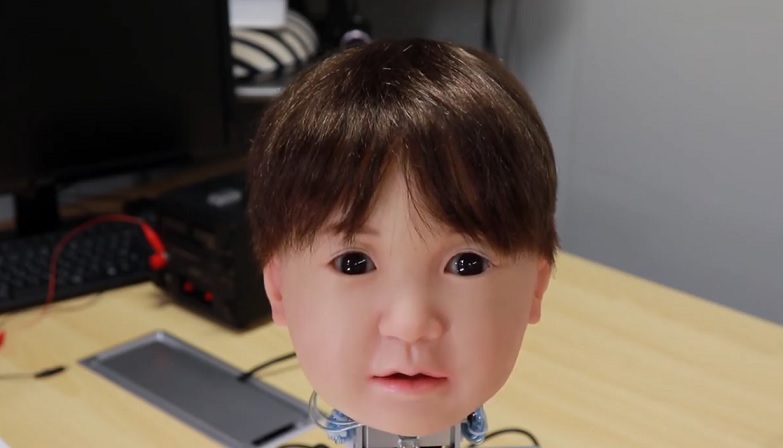 Во время демонстрации робот реагировал на касания и удары точно так, как это делал бы человек. Робот хмурился, морщился, сужал глаза и улыбался. Непонятно почему, ученые создали робота в виде головы мальчика.