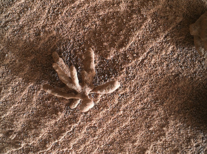 24 февраля 2022 года марсоход Curiosity (NASA) запечатлел на поверхности Красной планеты необычное образование. Аппарат использовал камеру MAHLI, расположенную на конце роботизированной руки. Об этом сообщается на сайте NASA.