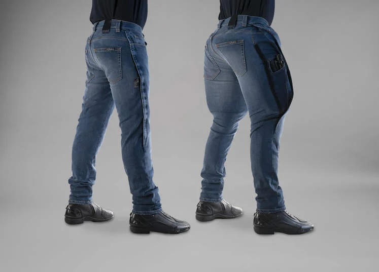 Шведская компания Mo'cycle недавно анонсировала первые в мире джинсы с подушками безопасности, которые обеспечивают защиту нижней части тела мотоциклиста от ударов в случае аварий.