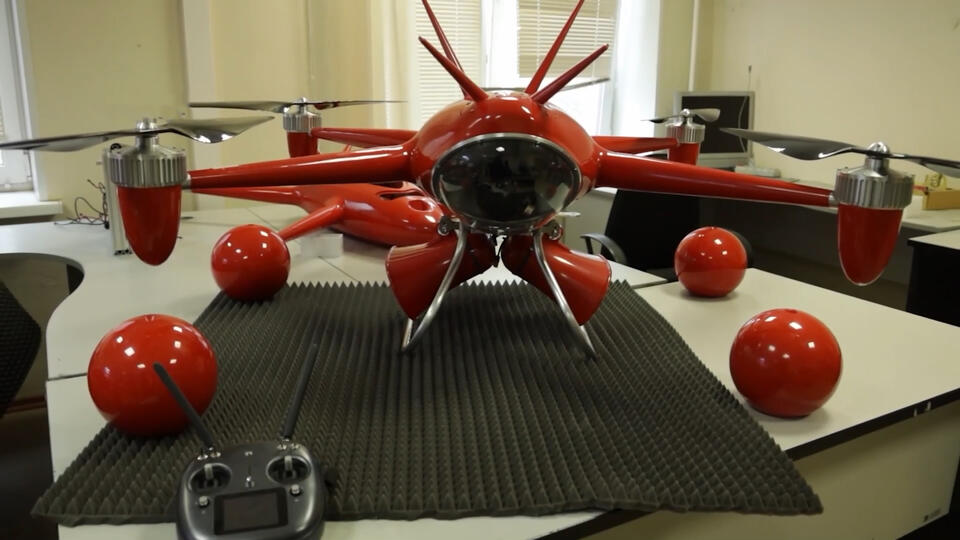 "Мы совместили возможность движения по канату, как бы по тросу, канатоход и возможность полета. Вот это сделано впервые, как мы говорим, скрестили орла и ужа – можем летать и можем ползать одновременно. Вот это первая уникальная разработка или решение. Ну а второе – это электромагнитная совместимость, то есть возможность работать на линии высокого напряжения без их отключения", – рассказал Алексей Соколов.