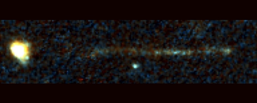 На изображении была видна яркая полоса, указывающая на центр неправильной галактики. Первоначально исследователи думали, что это космический луч, но он обнаружился в обоих фильтрах, используемых для обработки изображений. В октябре 2022 года они сделали новые снимки с помощью Keck Observatory, чтобы рассчитать красное смещение галактики и полосы. В результате этого выяснилось, что полоса имеет длину более 200 000 световых лет.
