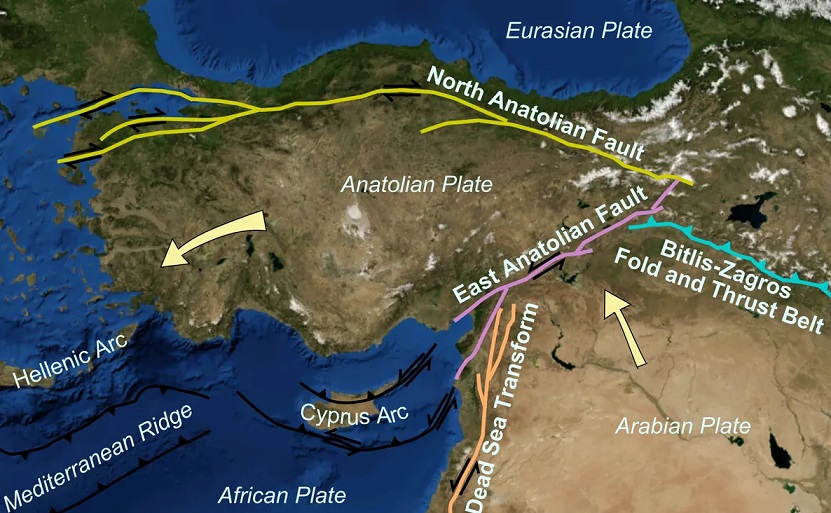 Данный район Турции подвержен землетрясениям, поскольку он находится на пересечении трех тектонических плит, составляющих земную кору: Анатолийской, Аравийской и Африканской плит. Аравия движется на север в Европу, в результате чего Анатолийская плита (на которой находится Турция) движется на запад.