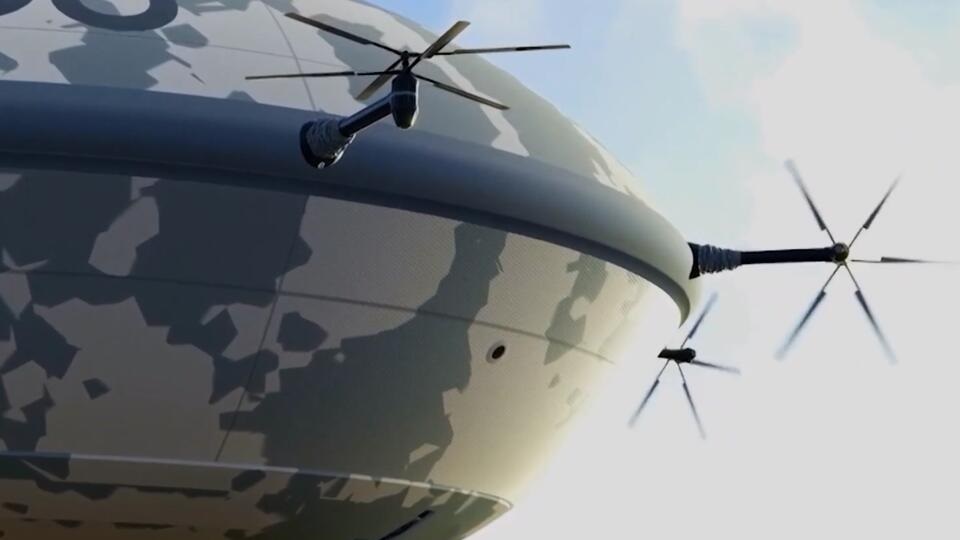 Футуристический аппарат размером с два футбольных поля работает по уникальному принципу. Его купол наполнен гелием, а для вертикального подъема используются восемь мощных вертолетных двигателей.
