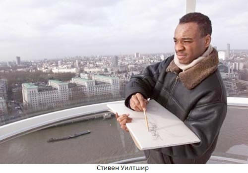 В 3 года Стивену Уилтширу поставили диагноз аутизм. В 4 года начал рисовать, а говорить – в 5. Лишь однажды взглянув на городской пейзаж, он способен воспроизвести его на бумаге до мельчайших подробностей. Рисует только шариковыми ручками. Полетав на вертолете над Лондоном, он нарисовал многометровую карту города, по точности не уступающей аэрофотосъемке. В аэропорту им. Кеннеди всех прилетевших в Нью-Йорк встречает 76-метровая панорама города работы Уилтшира.