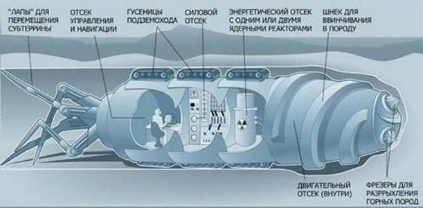 Работы возобновились при Хрущеве. По замыслу грозившего показать американцам «кузькину мать» генсека подземоходы должны были доползти до США, заложить и взорвать ядерные заряды под стратегическими объектами, вызвав крупные землетрясения.