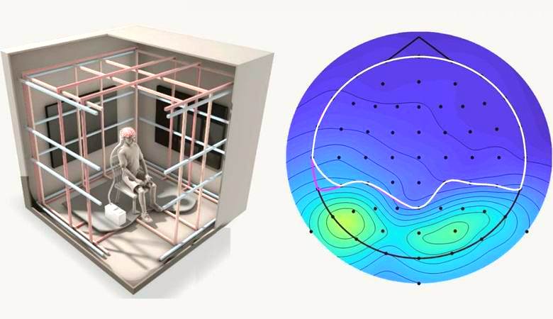 Ученые создали специальную клетку-помещение с искусственным магнитным полем, направление силовых линий которого можно свободно менять. Затем в клетку по очереди помещались добровольцы, и электроэнцефалограф регистрировал активность мозга каждого из них. Оказалась, что во время вращения магнитного поля электрические колебания в центральном отделе нервной системы человека заметно меняют свою амплитуду.