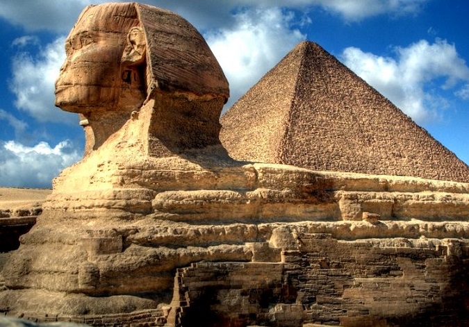 Большой сфинкс, расположенный на западном берегу Нила в Гизе, обращен лицом к восходящему Солнцу. Тем не менее, общепринятой является теория о том, что в древности некий архитектор случайно наткнулся на огромную известковую скалу и вытесал из нее изображение зооморфного существа - лежащего на песке льва с человеческим лицом, в чертах которого некоторые узнают фараона Хефрена.