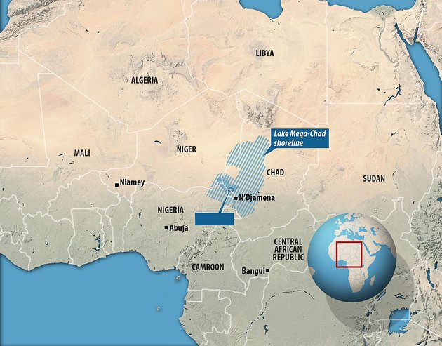 Данный водоем под названием Мега-Чад простирался на месте ныне существующей пустыни Сахары и имел площадь 390 тысяч квадратных километров.