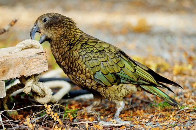 Попугаи кеа — это новозеландские эндемики, то есть они обитают только там. В длину достигают 46 сантиметров, в основном оливково-зелёные с ярко-красными перьями под крыльями. Относятся к категории уязвимых, данные о численности сильно разнятся — от 1 до 15 тысяч особей. Учёные отметили, что эти птицы живут в стаях с достаточно сложной социальной структурой, в которой им нужно помнить личности отдельных сородичей. Они известны своей любознательностью и легко идут на контакт с людьми, часто переворачивают мусорные контейнеры и могут даже испортить клювом автомобиль, если какая-то его деталь их заинтересовала.