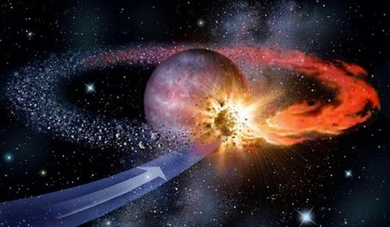 Согласно самой распространенной теории, в самом начале зарождения Солнечной системы с Землей столкнулась планета под названием Тейя, в результате чего на орбиту нашей планеты был отброшен кусок породы, который стал ее постоянным спутником - Луной.