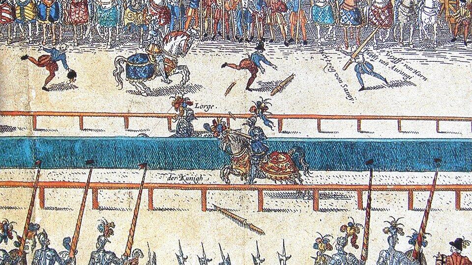 По традиции, был устроен рыцарский турнир, в котором участвовал и сам король; его соперником был граф де Монтгомери. Во время поединка копье графа сломалось, осколок через забрало пронзил череп Генриха и вышел через ухо. Травма оказалась смертельной, после долгой агонии монарх скончался.