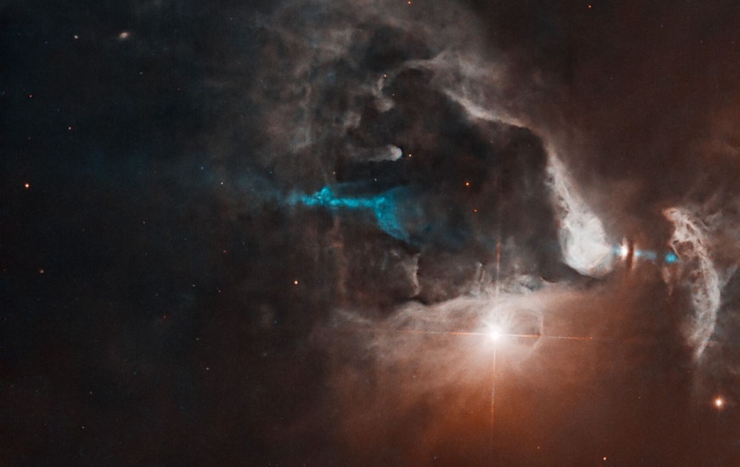 Астрономы также наблюдали, как FS Tau B испускает сияющие струи, которые отражаются от пыльной туманности в виде областей синего света. Эти струи являются признаком того, что звезда все еще находится в процессе формирования.