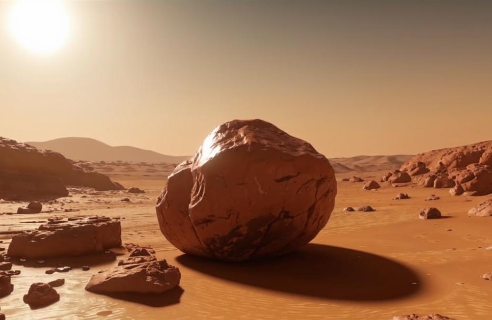 Его поверхность буквально усыпана сотнями мелких сферических объектов сероватого оттенка. Некоторые из них имеют продолговатую форму, другие напоминают острые обломки, а третьи содержат микроскопические отверстия. Геологи ломают голову над вопросом, какие процессы могли привести к образованию этих необычных структур.