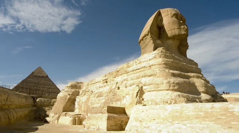 Переносимся в Гизу, где на находится Большой Сфинкс, согласно официальной версии, построенный в 2500 году до н. э. Однако геолог Роберт Шох обнаружил следы водной эрозии, которые могли возникнуть из-за сильных дождей. Если это так, то Сфинкс может быть на тысячи лет старше династического Египта, представляя собой реликвию забытого народа.