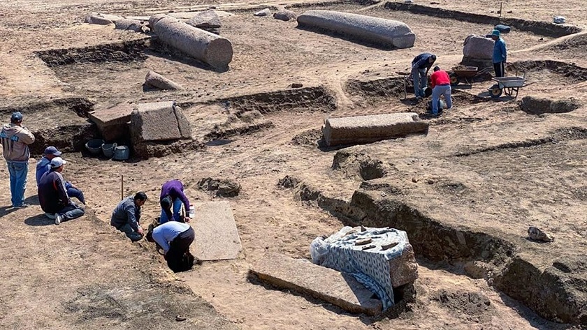 Археологи нашли набор гранитных блоков, вероятно, используемых для строительства лестницы для молящихся, чтобы добраться до храма.