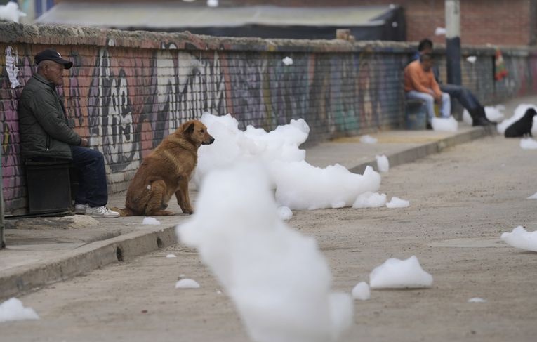Экологи обвиняют во всем производимые сбросы из промышленной зоны, а также бытовые моющие средства, поднимающие зловонную пену в городе примерно в 20 километрах от столицы страны Боготы.