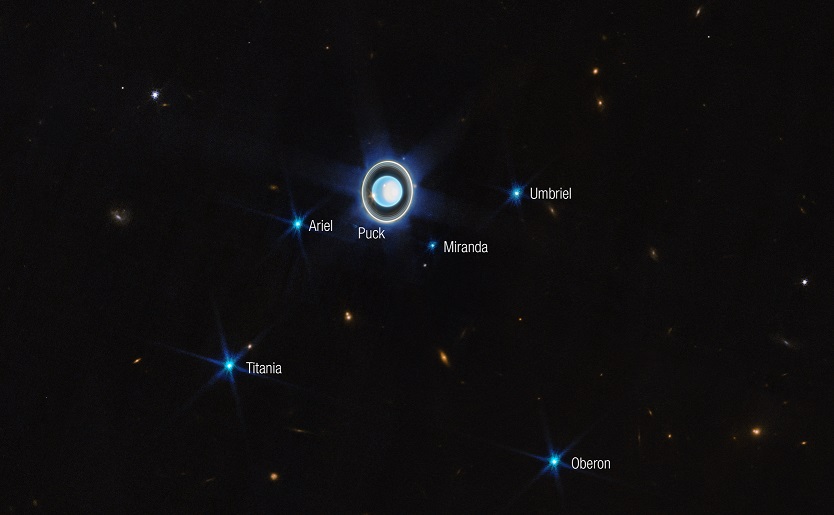 На изображении ниже можно увидеть два ярких спутника Урана, Оберон и Титанию, а также динамичную атмосферу планеты.