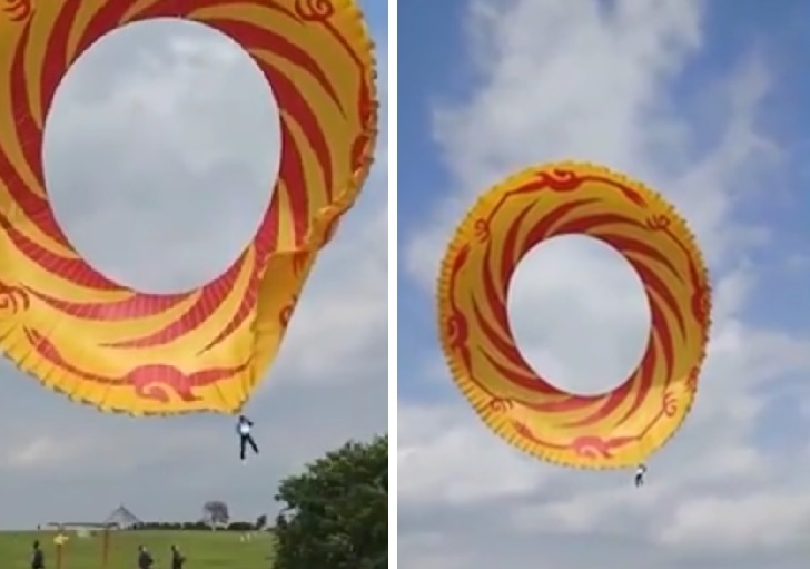 Невероятный случай на соревнованиях по пилотированию летающих воздушных змеев в Китае