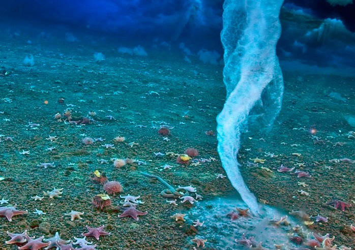 Потоки также переносят питательные вещества, которые помогают микроорганизмам расти и формировать экосистемы на дне океана. Однако когда эти ледяные палочки достигают живых организмов, они могут уничтожить их, что негативно сказывается на экосистемах на дне океана.