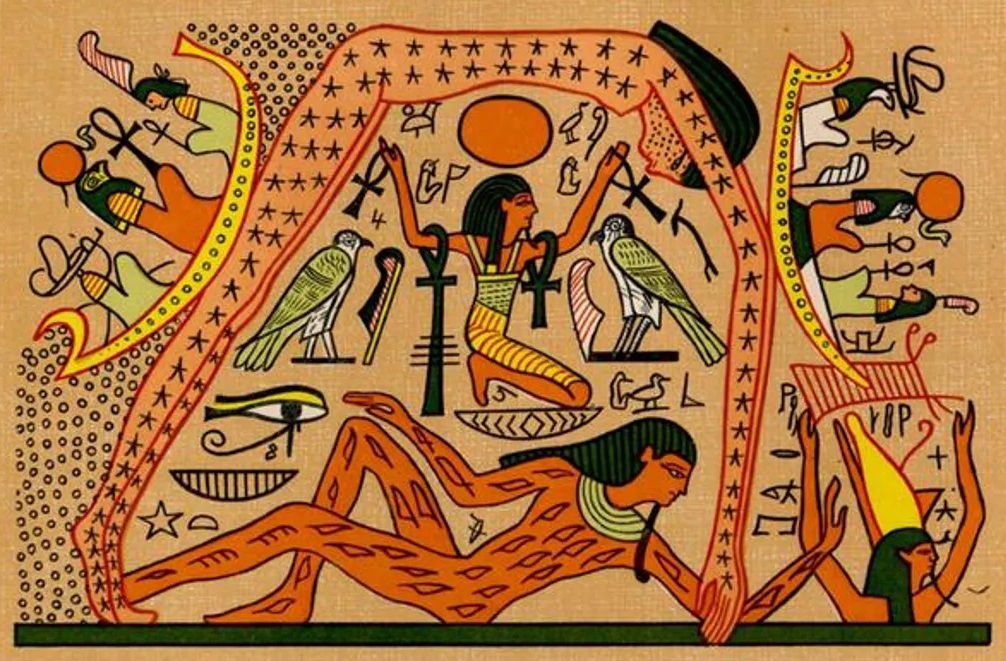 Исследователи считают, что Млечный Путь был представлен богиней неба Нут, которая изображалась как усыпанная звездами женщина, защищающая Землю от хаотичных вод. Доктор Граур обнаружил, что Нут часто изображалась с руками, раскинутыми под углом 45 градусов, что позволяло ей охватывать различные направления Млечного Пути в течение года.