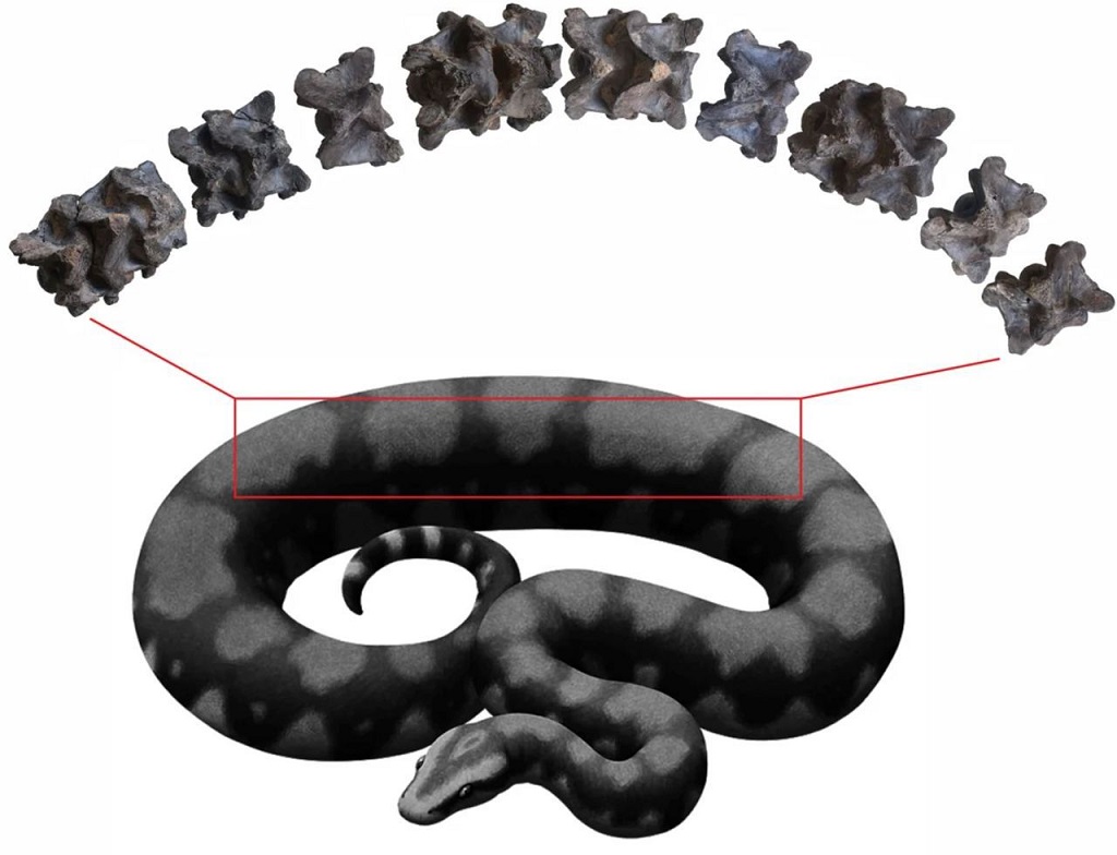 Исследователи из Индийского технологического института Рурки обнаружили окаменелые останки змеи в угольной шахте в штате Гуджарат (западная Индия). В своем исследовании они описывают 27 в основном хорошо сохранившихся позвонков змеи, размером от 37,5 до 62,7 миллиметров.