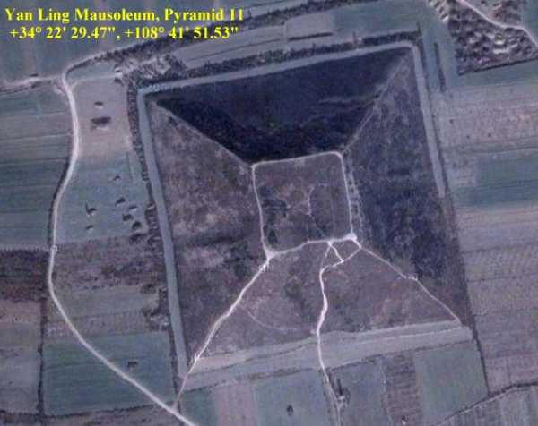 Долина пирамид расположена в центральной части Китая чуть севернее города Сиань. Городу более 3.000 лет, это древняя столица Китая. Пирамиды упоминаются в самых первых документах, и уже с эпитетом «древние». Одно это переносит время их постройки на несколько тысяч лет назад. Некоторые пирамиды имеют отклонения на северо-запад от строгой ориентации по сторонам света. Просчет строителей? В эпоху верхнего палеолита Северный полюс располагался в районе Гренландии. Строители не ошиблись, просто дату создания следует перенести в эпоху 10.5 тысяч лет до н.э.