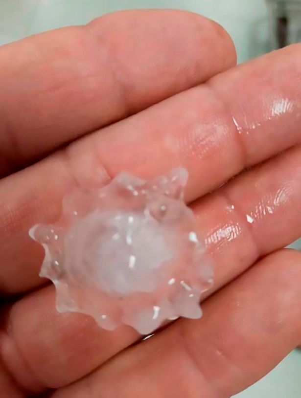 По словам метеоролога Хосе Мигеля Винаса, странная форма градин на самом деле является обычным явлением во время в шторма. Внутри него град начинает формироваться как небольшой шарик, а затем накапливать на высоте новые слои льда. Достигнув больших размеров, градины начинают биться друг о друга, образуя шипы.