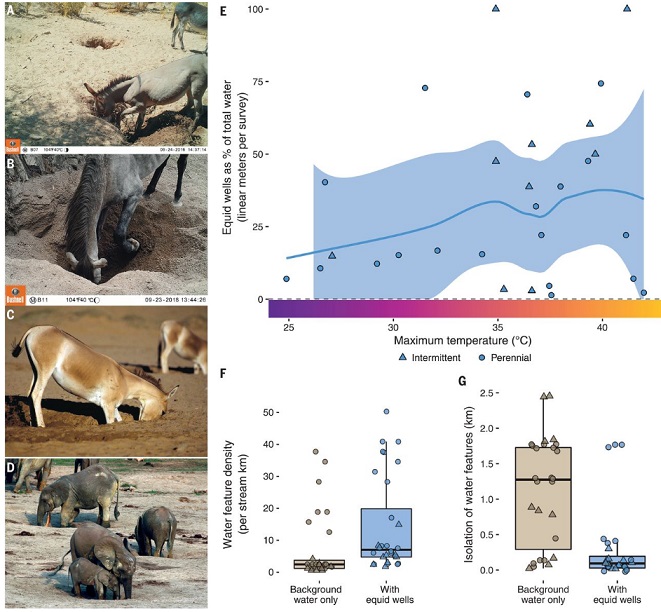 Выяснилось, что крупные животные, такие как ослы и лошади, способны копать колодцы глубиной до двух метров, чтобы добраться до воды. Благодаря таким ямам вода становится доступной и для других животных. К тому же это сокращает расстояние до источников открытой воды, что помогает фауне выживать. Мало этого, заброшенные «колодцы» помогают выживать и растениям, что приводит к увеличению всхожести многих видов деревьев.