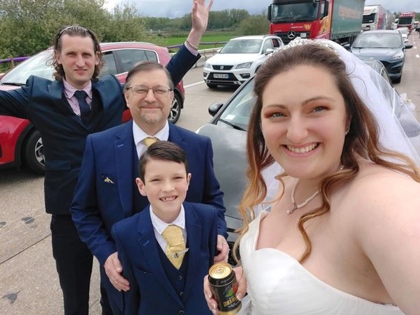 28-летняя Лаура Лакхерст (Laura Luckhurst) направлялась на свадьбу по магистрали M20 в графстве Кент, когда движение остановилось из-за загоревшегося грузового автомобиля. К тому времени жених и гости успели добраться до дворца бракосочетаний. Недоставало только невесты, ее отца и еще двух человек, ехавших с ними.