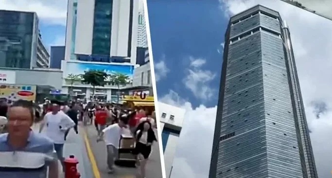 Десятки тысяч жителей китайского города Шэньчжен разбегались из центра города, при этом постоянно оглядываясь себе за спину и куда-то вверх. Впечатление такое, что спасаются от Годзилы.