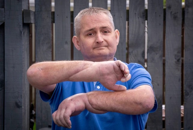 Пациент, 48-летний Стивен Галлахер, рассказал, что 13 лет назад у него диагностировали аутоиммунное заболевание, при котором нормальная ткань заменяется плотной из-за того, что клетки производят слишком много коллагена. Заболевание затронуло нос, рот и руки, а около семи лет назад пальцы британца начали скручиваться в кулак, из-за чего он испытывал сильную боль и дискомфорт.