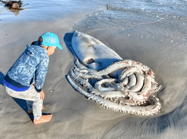 Увидеть гигантского кальмара на пляже в Южной Африке — редкость, хотя и не уникальный случай, так как в 2020 году около Кейптауна выбросило прекрасно сохранившегося детеныша гигантского кальмара. Другой экземпляр взрослой особи, выброшенный на берег в том же районе в 1992 году, имел длину чуть более 9 метров.