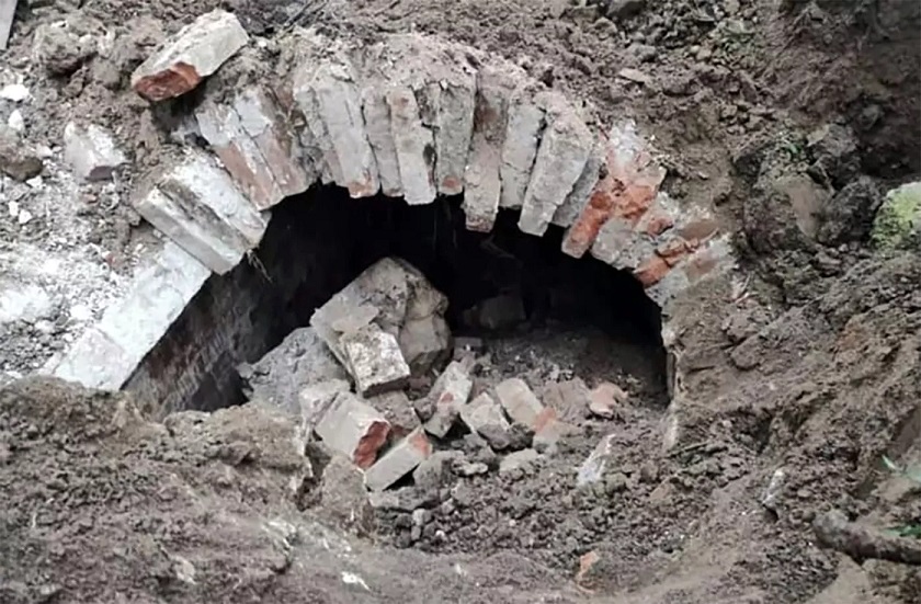 При прокладке траншеи был обнаружен склеп с останками священника.
