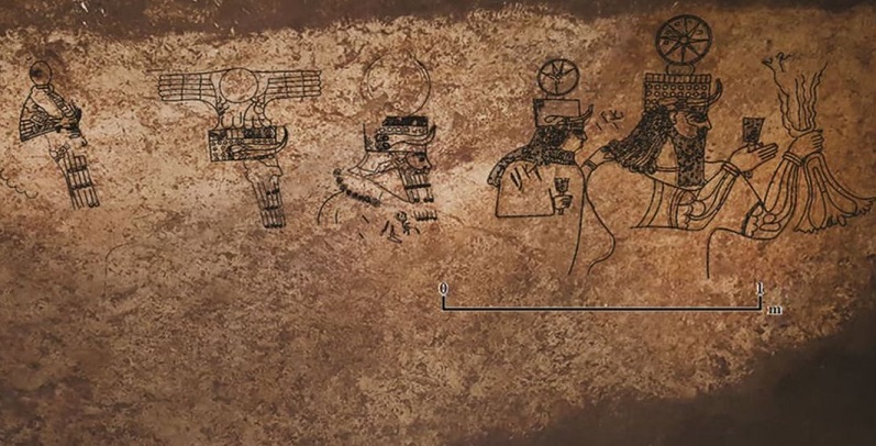 Часть произведения искусства изображает Хадада, бога бури, и Атаргатис, главную богиню северной Сирии.