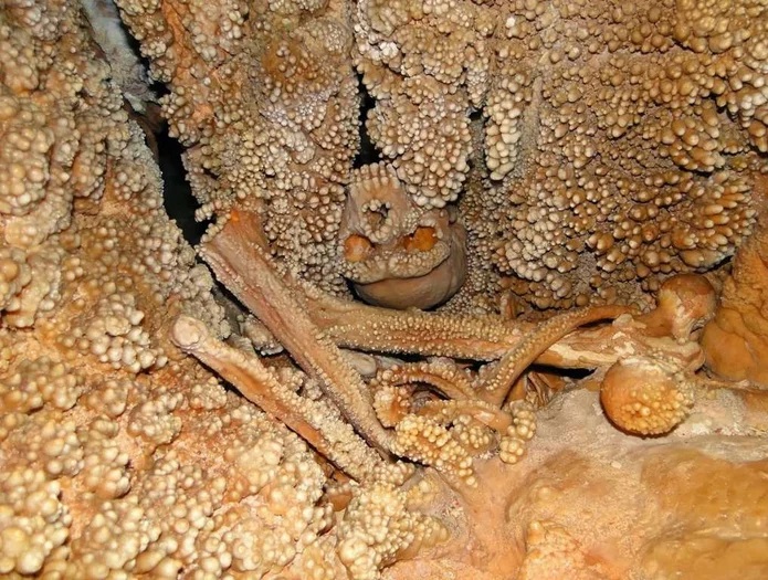 Открытие, сделанное в 1993 году в пещере Ламалунга на юге Италии, по-прежнему остается одним из наиболее загадочных и увлекательных археологических открытий. Внутри пещеры, сформированной воронкой, был обнаружен полный скелет человека, покрытый мелкими пятнышками «пещерного попкорна».