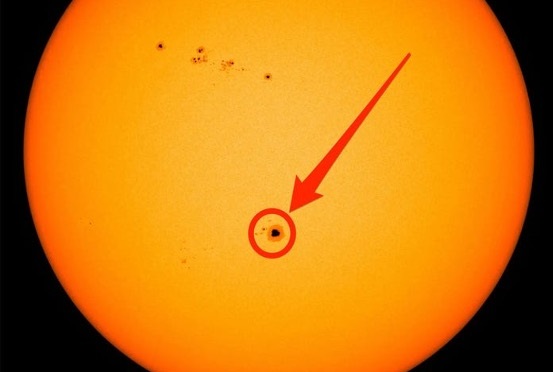 "Гигантское солнечное пятно находится прямо на солнечном диске, и я могу четко видеть его через специальные солнечные очки", - рассказал Йом spaceweather.com. Он также предупредил: "Будьте осторожны! Необходимо использовать очки для затмения или солнечные фильтры, чтобы защитить свои глаза".