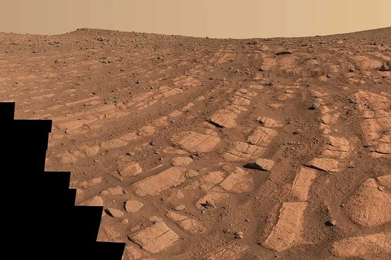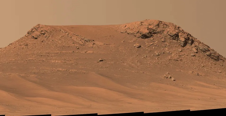 Марсоход NASA Perseverance запечатлел эту мозаику холма, получившего название «Сосновый бор». Ученые считают, что высокие осадочные слои, наложенные друг на друга здесь, могли быть сформированы глубокой, быстротекущей рекой.