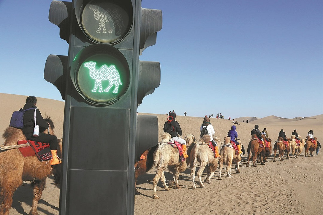 Каждый год в мае на горе Минша и Кресент-Спринг доступно для катания около 2400 верблюдов, и их число постоянно растет. В первый день мая 2023 года гору Минша посетило более 10 000 человек, а в последующие дни их число выросло до 20 000. Многие туристы предпочитают кататься на верблюдах, что приводит ведет к образованию пробок на популярных маршрутах.