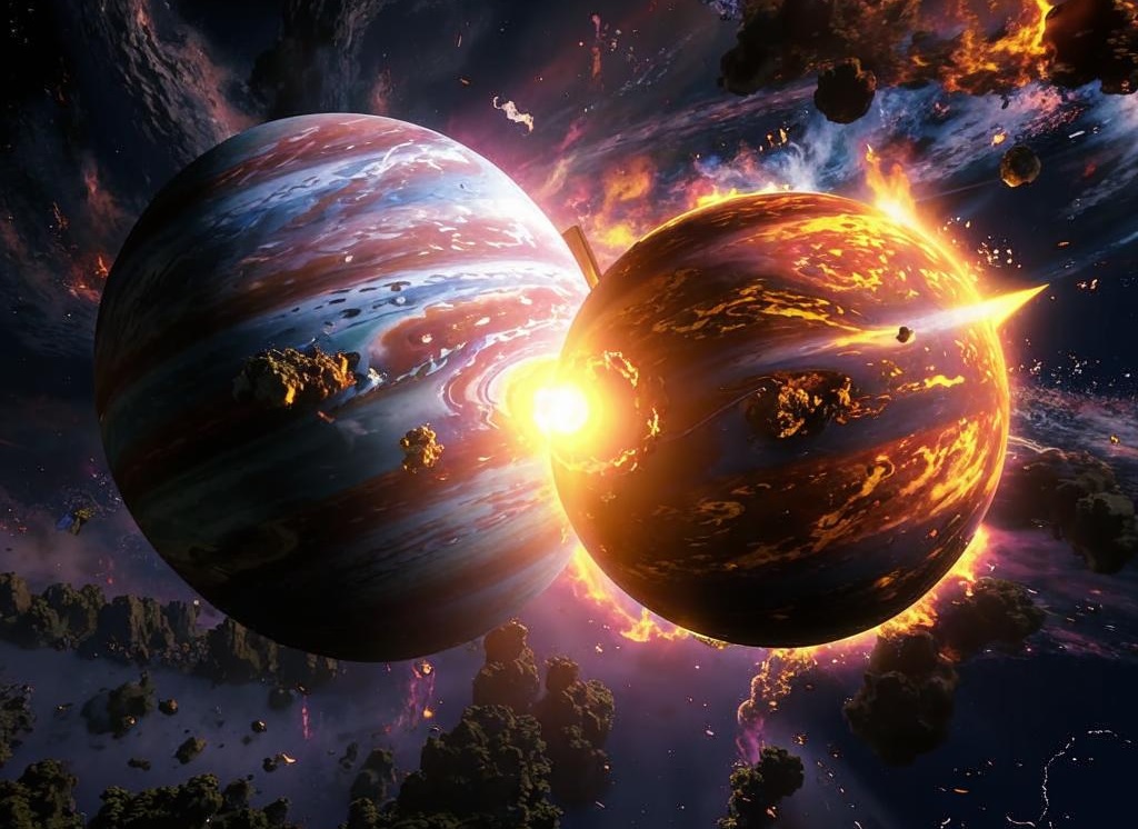Недавняя статья, опубликованная астрономами, описывает моделирование столкновения двух массивных газовых гигантов. Исследователи стремились выяснить, могут ли такие события создавать долгоживущие сейсмические волны, которые сможет зафиксировать космический телескоп JWST.