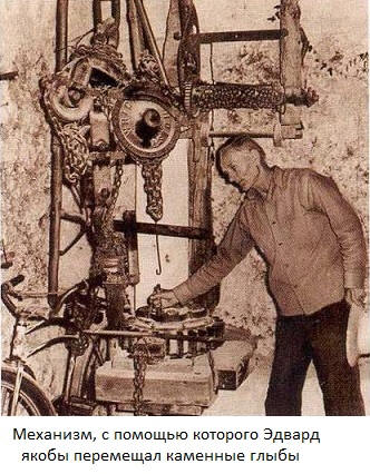 До сих пор остается загадкой, каким образом Эдвард переносил блоки с места добычи на побережье на свой участок и размещал их там, как подымал 5-тонные скульптуры на высоту до 10 м. Никогда он не нанимал для этого технику и никогда не нанимал в помощь людей. Худой щуплый Эдвард, вес которого едва превышал 47 кг, всегда справлялся сам.