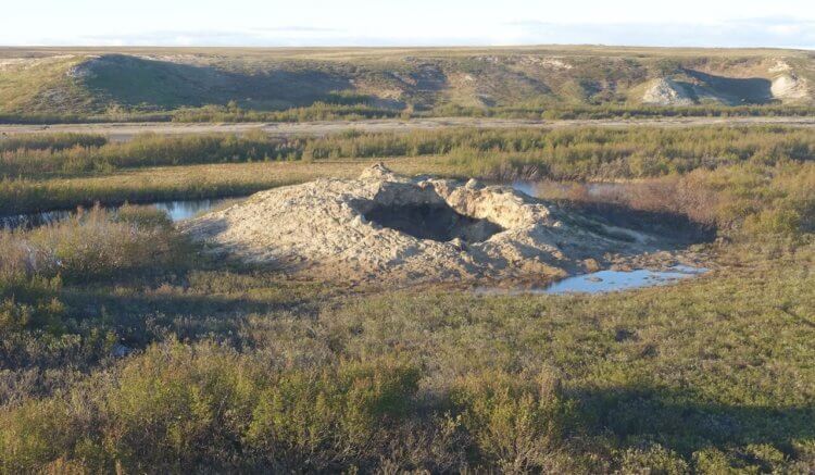 Метан, возможно, смешанный с углекислым газом, находится под вечной мерзлотой. При потеплении климата мерзлота начинает подтаивать снизу, позволяя газу подниматься все выше. В конце концов, под давлением газа на поверхности земли появляется холм, который затем прорывается с образованием кратера, — считают ученые.