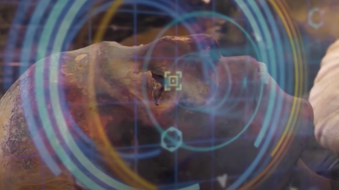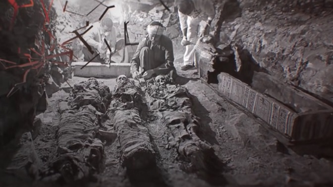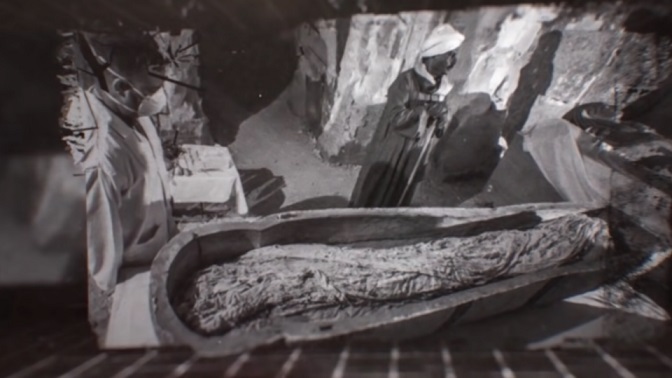Экс-разведчик утверждал, что на след необычной мумии советских ученых навели местные жители, которые обнаружили гробницу. Но войти внутрь египтяне побоялись, так как якобы разглядели на стене надпись: «Усыпальница бога». На архивных кадрах солдаты открывают саркофаг, а после этого в усыпальницу сквозь клубы пыли заходят люди в костюмах химзащиты.