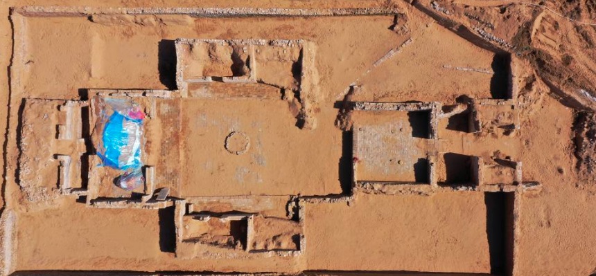 Так, во время раскопок ученые обнаружили два двора. Первый располагался у южной стороны замка и был относительно небольшим: 60 метров в длину и 25 метров в ширину. Его стены, дома и кирпичные полы хорошо сохранились. Там же нашли 30 глиняных статуй и каменную плиту: согласно надписи на табличке, в этом месте находился храм под названием Дворец Сяньин. Во втором дворе покоились руины более крупного здания, восточнее Дворца Сяньин.