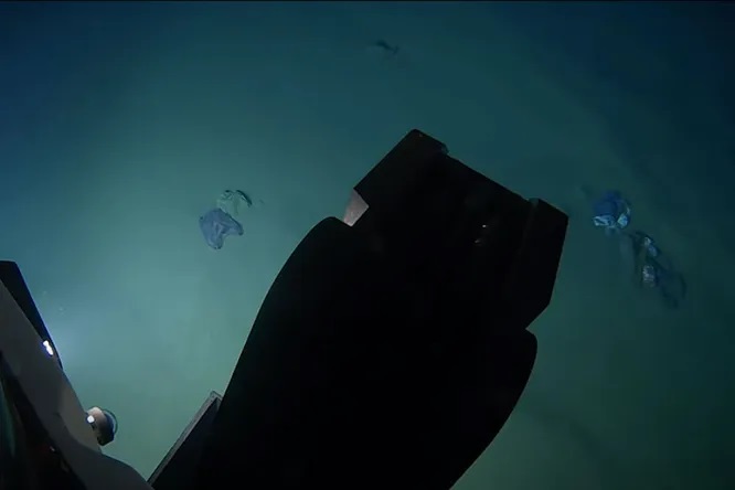 Помимо плюшевого мишки, они видели много других вещей, которым не место под водой. Когда он и Весково подошли ближе к западной стене впадины, они увидели что-то белое и решили, что это медуза. Но это был полиэтиленовый пакет.